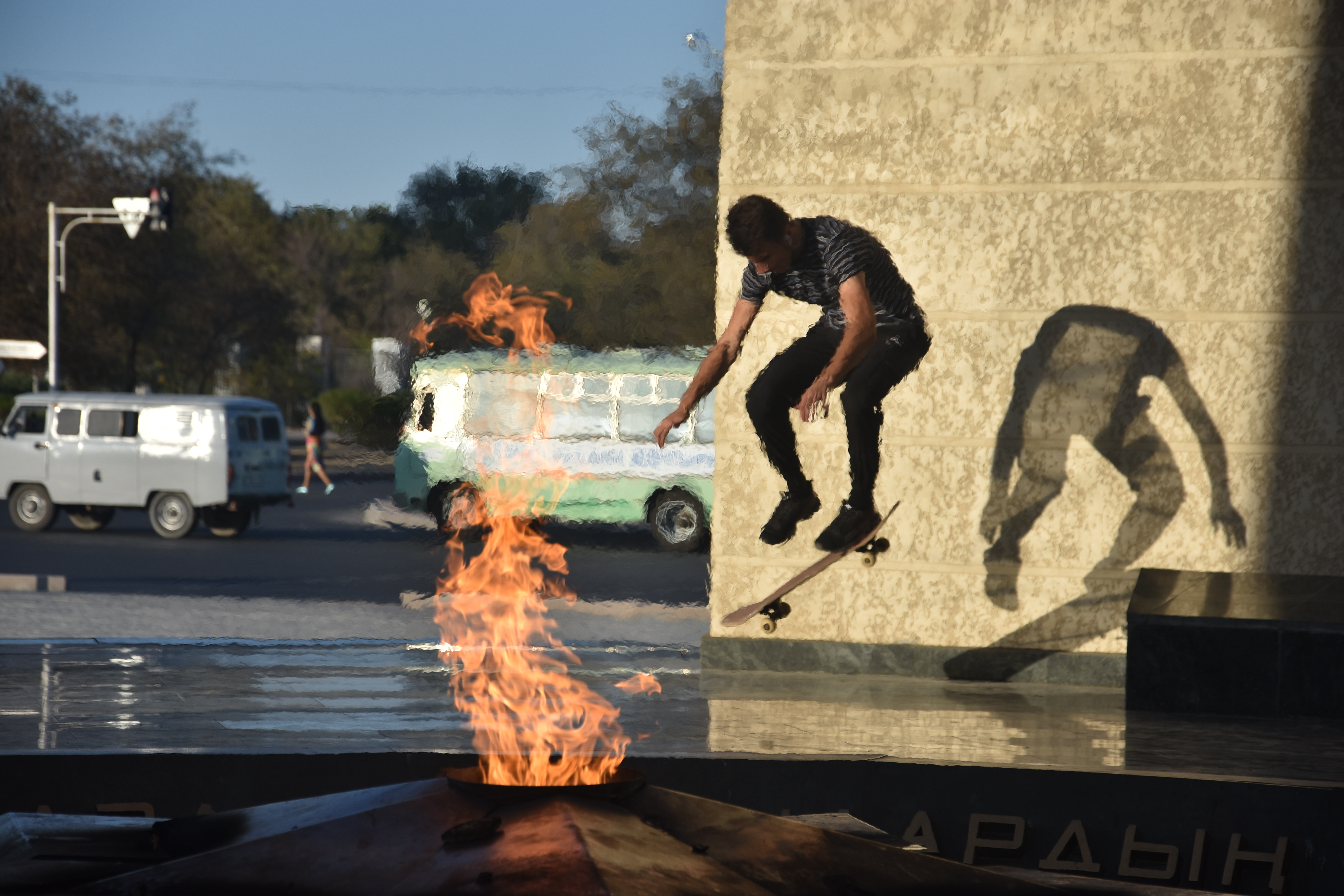 Whilst we were in the no man’s land, I saw figure out of the corner of my eye shifting around by a hanger. I immediately recognise them. It was Matt who we had left at the ferry port. He was still wearing the same clothes and looked rather disheveled. They had waited 6 hours at the port in the end for their ride and then driven through the night to the border. They had been waiting at the border since 4am (it was early afternoon at this point) and by all accounts would be waiting a while longer. I’d never been happier about a decision. We’d been to Aktau, explored, ate well, refreshed and had a good night’s sleep in the same time. I’d love to say I didn’t feel a little smug, but I did. I felt bad for him and Anvita though. They were seeking an ‘authentic experience’ and they certainly got one! We wished them well and off we went.